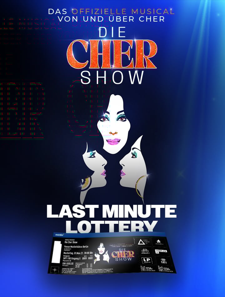 Jeden Dienstag verlosen wir unter Teilnehmenden der BlueMax-Lottery 20 Last Minute-Tickets pro Vorstellung in der aktuellen Spielwoche von „DIE CHER SHOW – Das offizielle Musical von und über CHER“ – und das zum exklusiven Sonderpreis von nur 30 € pro Ticket!