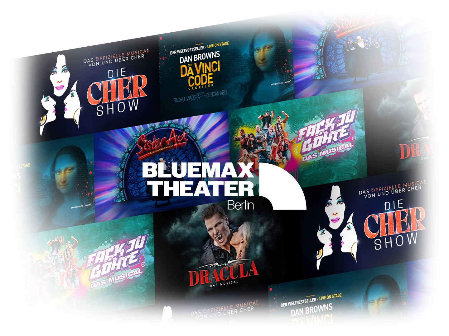 Im pulsierenden Herzen Berlins, direkt am Potsdamer Platz, erwartet dich ab Herbst ein abwechslungsreiches Programm, das keine Wünsche offen lässt: Ob die unvergessliche Liebesgeschichte von GHOST – Nachricht von Sam, ein Abend voller Hits bei DIE CHER SHOW, die verführerische Dunkelheit von DRACULA – Das Musical, das Rätsel von Dan Browns DER DA VINCI CODE – SAKRILEG oder das himmlische Vergnügen mit SISTER ACT – willkommen im BlueMax Theater. Mitten in Berlin. Mitten im Erlebnis.
