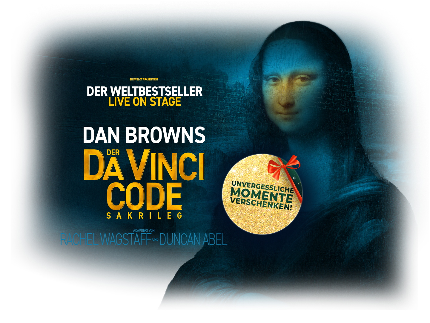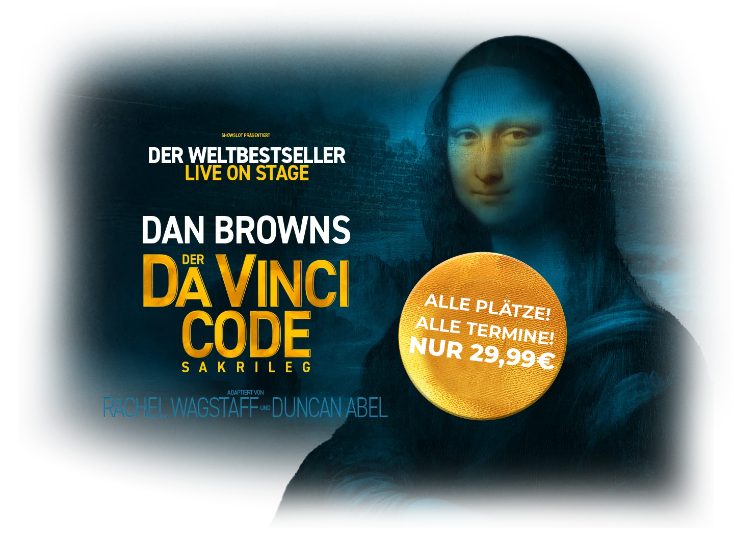 Dan Browns Thriller-Sensation „Der Da Vinci Code – Sakrileg” hielt über 80 Millionen Leser weltweit in Atem, war unglaubliche 48 Wochen lang auf Platz 1 der SPIEGEL-Bestsellerliste und faszinierte knapp sechs Millionen Kinobesucher allein in Deutschland – nun kommt das weltweite Bestseller-Phänomen erstmals auf die Theaterbühnen in ganz Deutschland und Österreich! Erlebe die packende Geschichte um Robert Langdons Suche nach dem Heiligen Gral durch ganz Europa so wie noch nie zuvor – in der offiziellen, filmreifen Bühnenversion mit einem epischen Soundtrack – Live und hautnah!